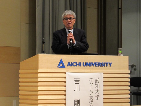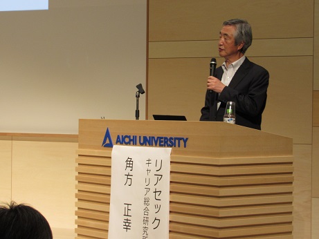 4月11日(木)、名古屋校舎コンベンションホールにおいて、第14回大学教育問題全学講演会が 「キャリア支援のあり方:「生きる・学ぶ・働く」と「多様な学び」の現場〜課外教育プログラム事例報告から〜」 とのテーマのもとに開催され、約120名の教職員が参加しました。 〈プログラム〉 1:変化の時代に応えるこれからのキャリア支援とは 講師:リアセック キャリア総合研究所 所長 角方 正幸 氏 2:「東海キャンパる」:大学生記者の経験から見る人財育成 講師:毎日新聞社 中部報道センター室長 樋口 直樹 氏 (学生報告) 「東海キャンパるに参加して」 国際コミュニケーション学部2年 遠藤 扶佐さん 3:本学「Learning+」・「OB・OG探訪記」と低年次キャリア支援 講師:キャリア支援センター長 吉川 剛 氏 (学生報告) 「OBOG探訪記を通じて学んだこと」 法学部2年 野口 七海さん 司会・進行: 学生支援事務部長 滝口 博元 氏 経営学部2年 三浦 陽花さん |